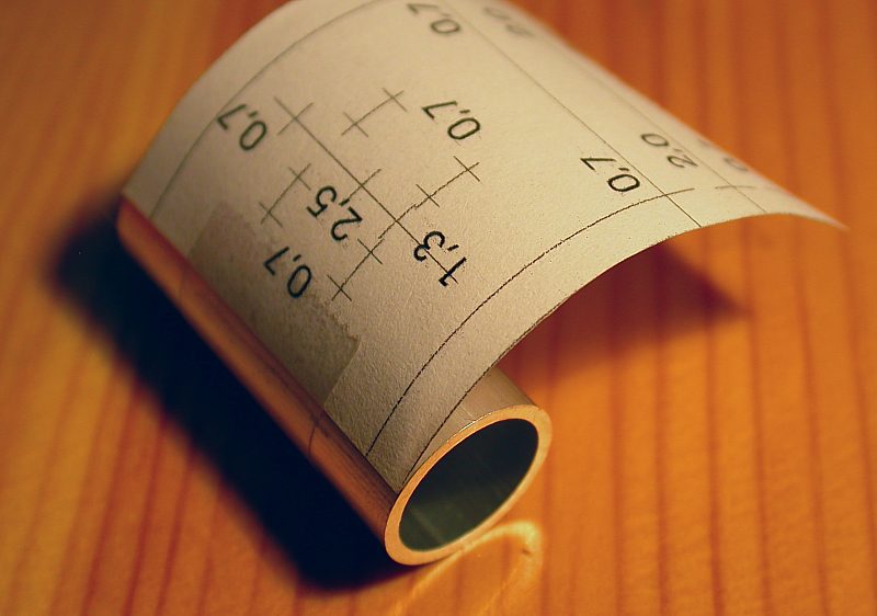 26. Glue it with the flat side downwards to the tube. To center it before the glue cures, you can roll it on a plain