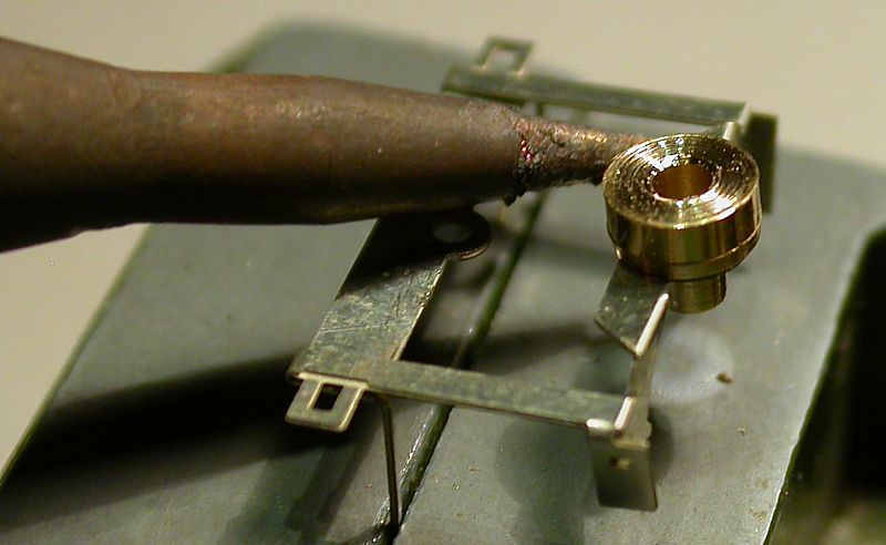 9. Now solder the bearing pin. Keep the soldering iron to the bearing pin and the soldering tin to the gap between the