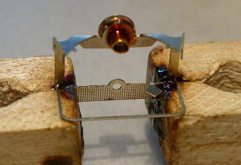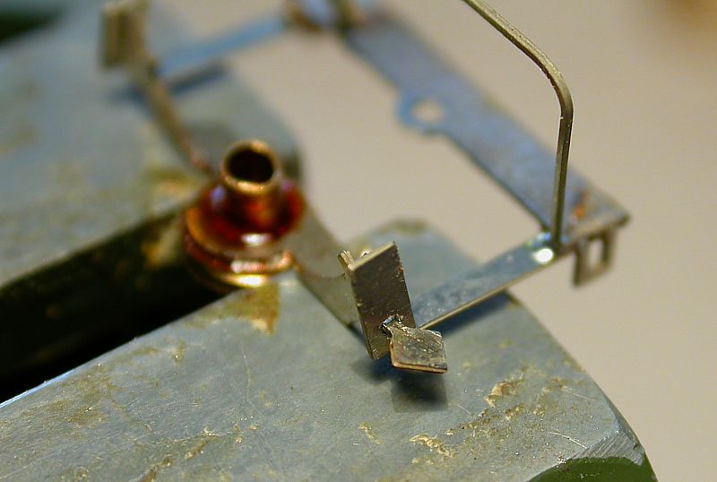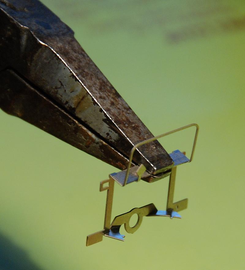 7. Bend the platform by another approx. 70° with the flat nose plier. Now press the platform to the supporters. A small