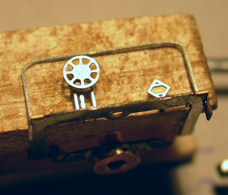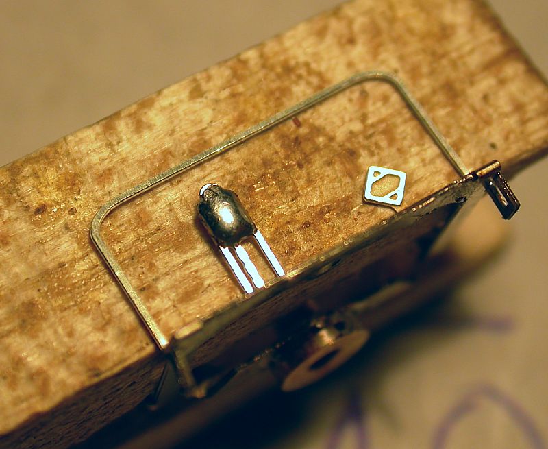 15. On a platform with hand brake you now cover the brake gear with tin to add a little volume. Then glue the hand