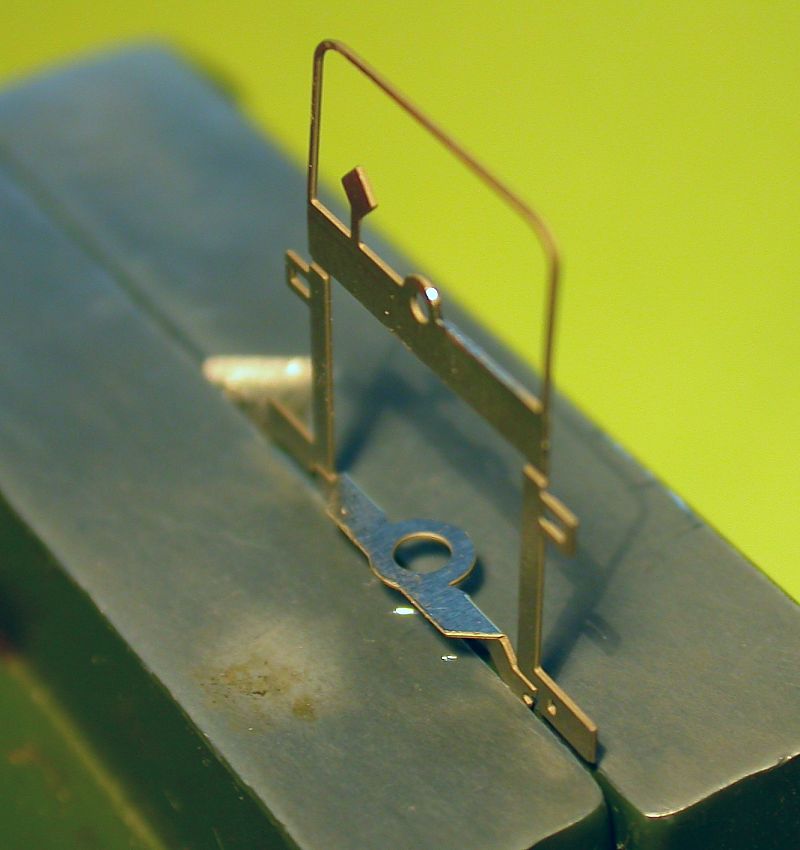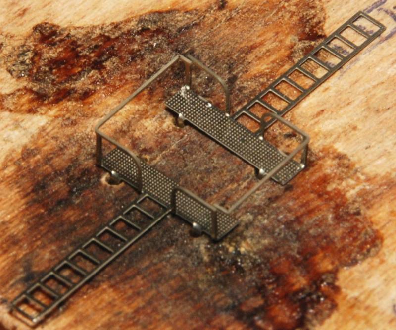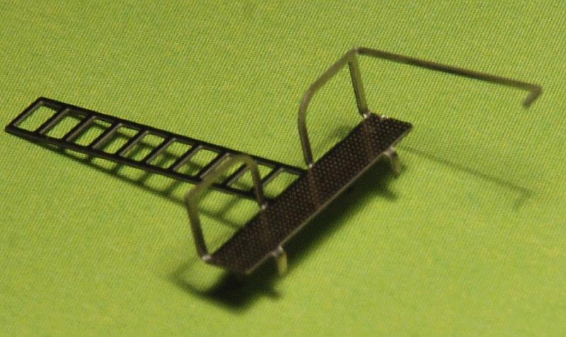 the long end of the railing on the upper platforms has a predetermined bending point with an attached solder tail at the